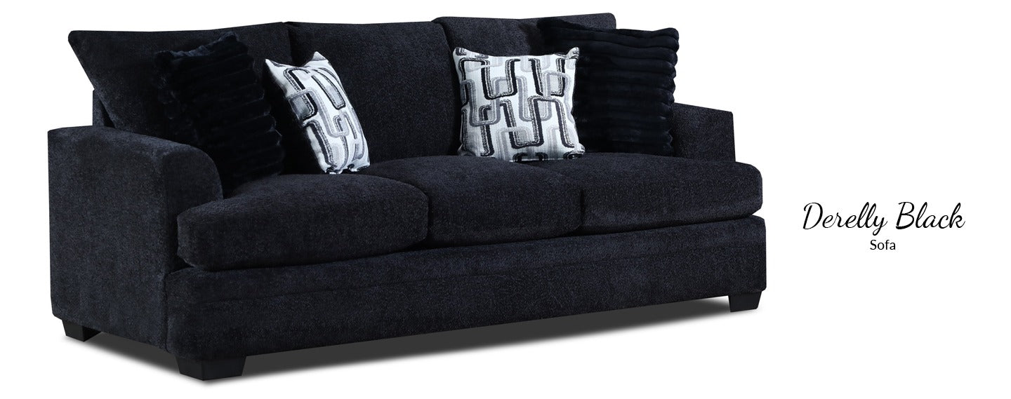 The Derelly offers a sleek silhouette with fantastic support! This upholstered group is ideal for anyone looking for comfortable seating that is easy to maintain. The set is complete with stylish throw pillows!