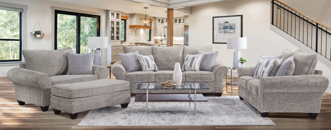 The super plush fabric on the Flannery group makes this cozy set the perfect addition to any family room. The welt outlines this large-scale group adding a more tailored look to the plush feel. The collection offers reversible seat cushions and backs.