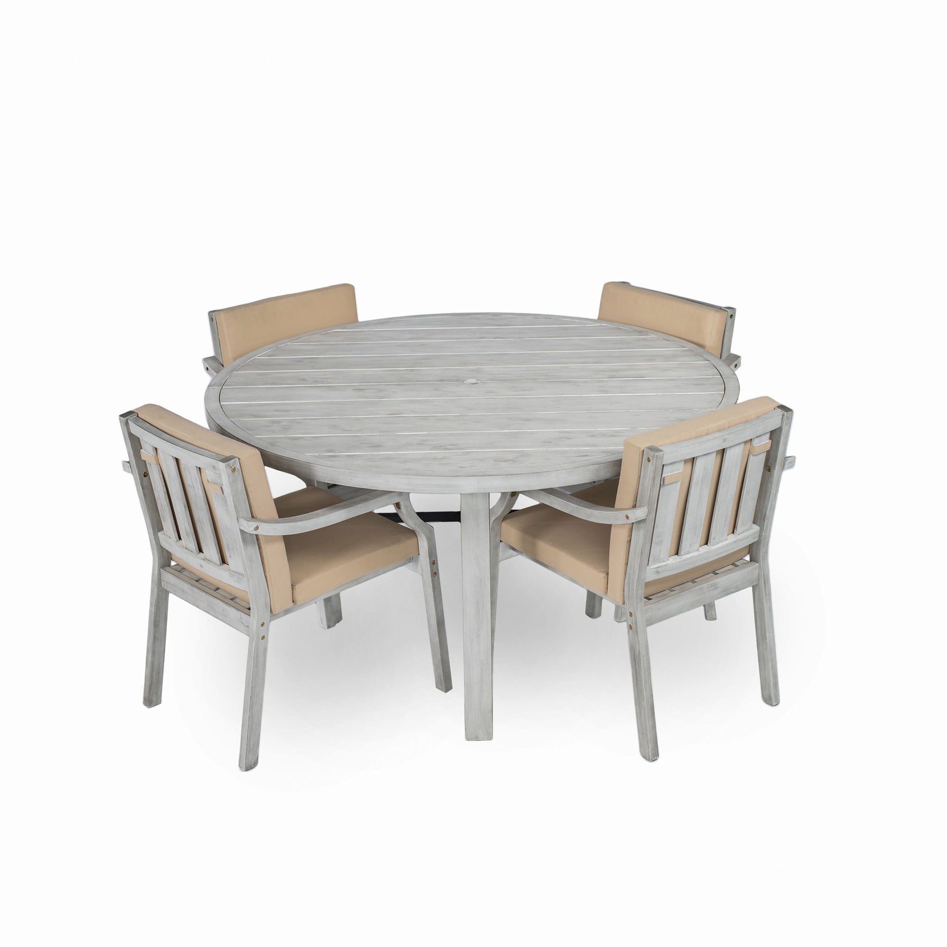 4 Person Outdoor Dining Set With Umbrella Hole And Removable Cushions For Patio - Gray