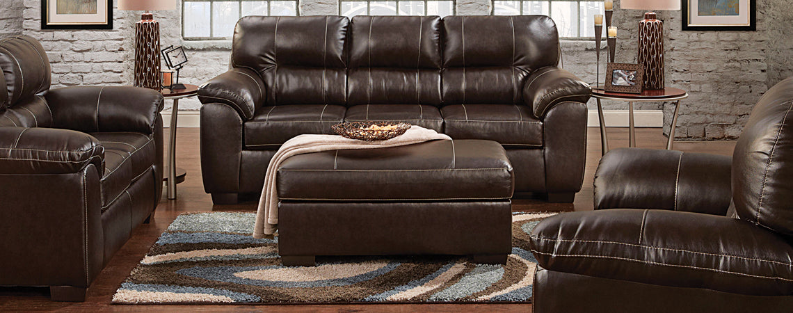 Boasting plush pillow top arms and channeled back cushions this set is cozy comfort. Smooth pulled upholstery envelopes the entire piece giving it a casual look that is also contemporary.
