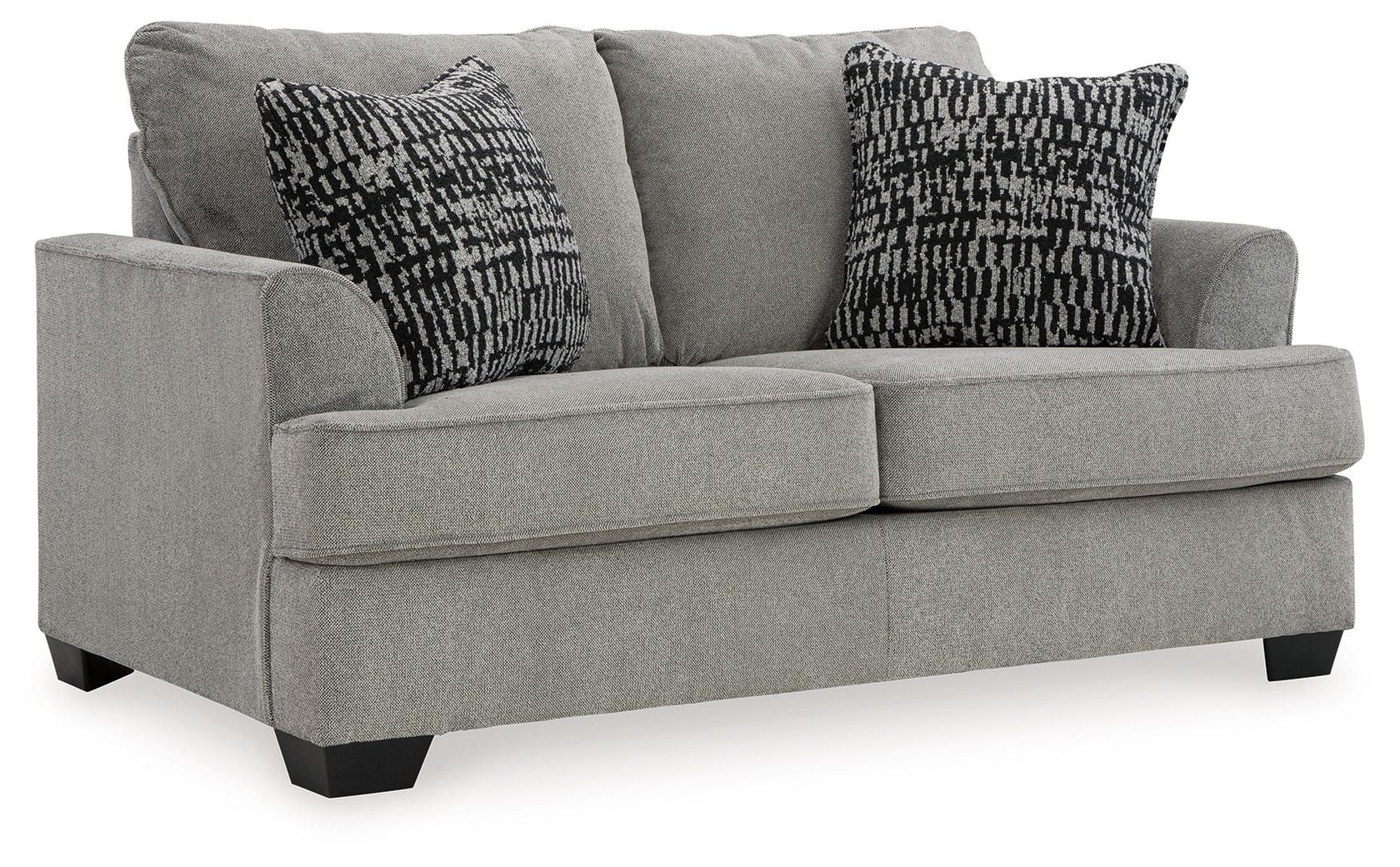Stealing the show in on-trend, wonderfully plush upholstery, this loveseat takes center stage with its comfort and contemporary look. A generous seat depth makes the high-design piece comfortable enough for easy everyday living. Sit back and relax in clean, cool style anywhere and everywhere you please with this striking loveseat.