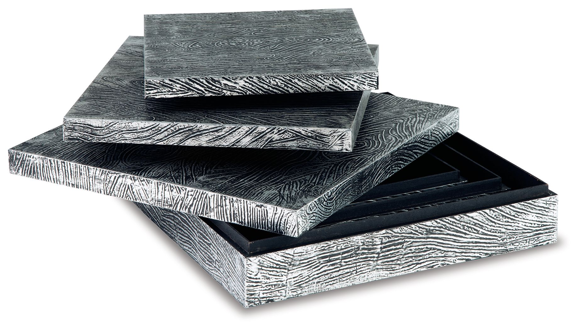 Ideal for a dresser, chest or accent table, this set of three wood and metal boxes is a contemporary choice for the forward-thinking modernist.