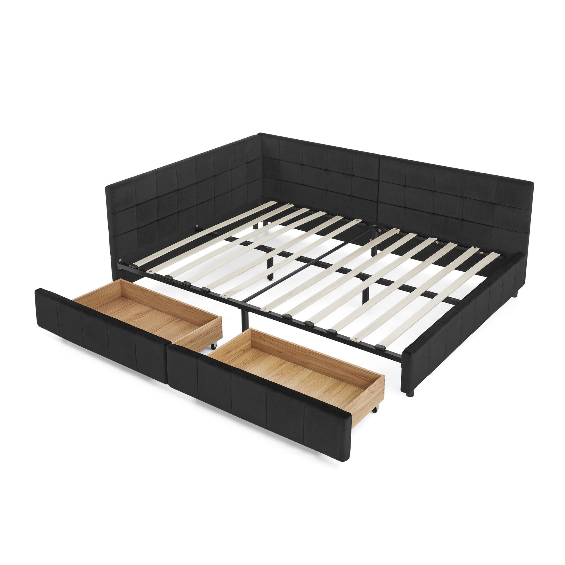 Mid-Century Storage Upholstered Tufted Bed Frame With Backrest And Armrests