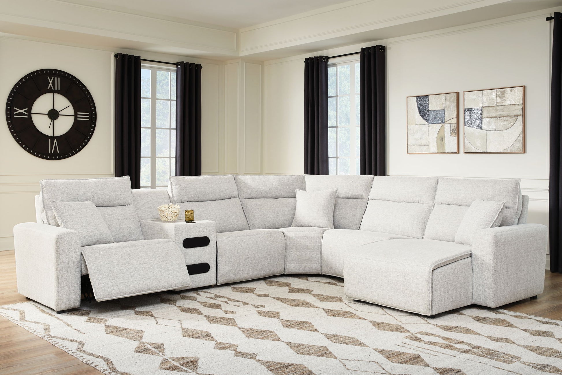 Modmax II - 6-Piece Power Reclining Sectional With RAF Press Back Power Chaise And Audio Console - Stone
