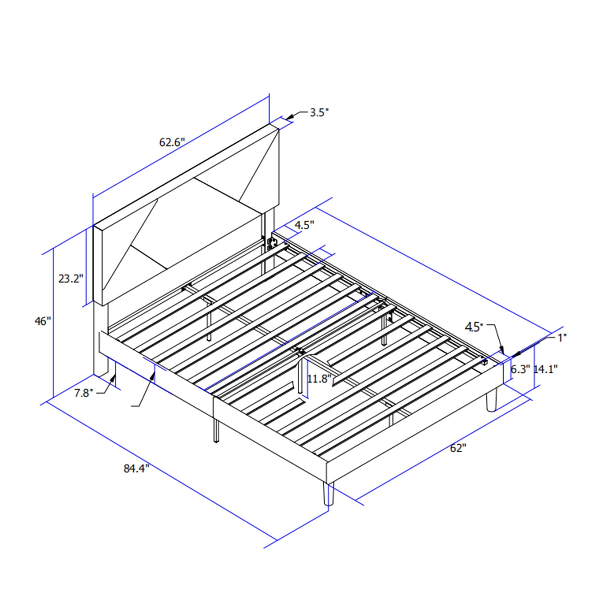 Queen Size Upholstered Platform Bed Frame Wood Slat Support - Gray