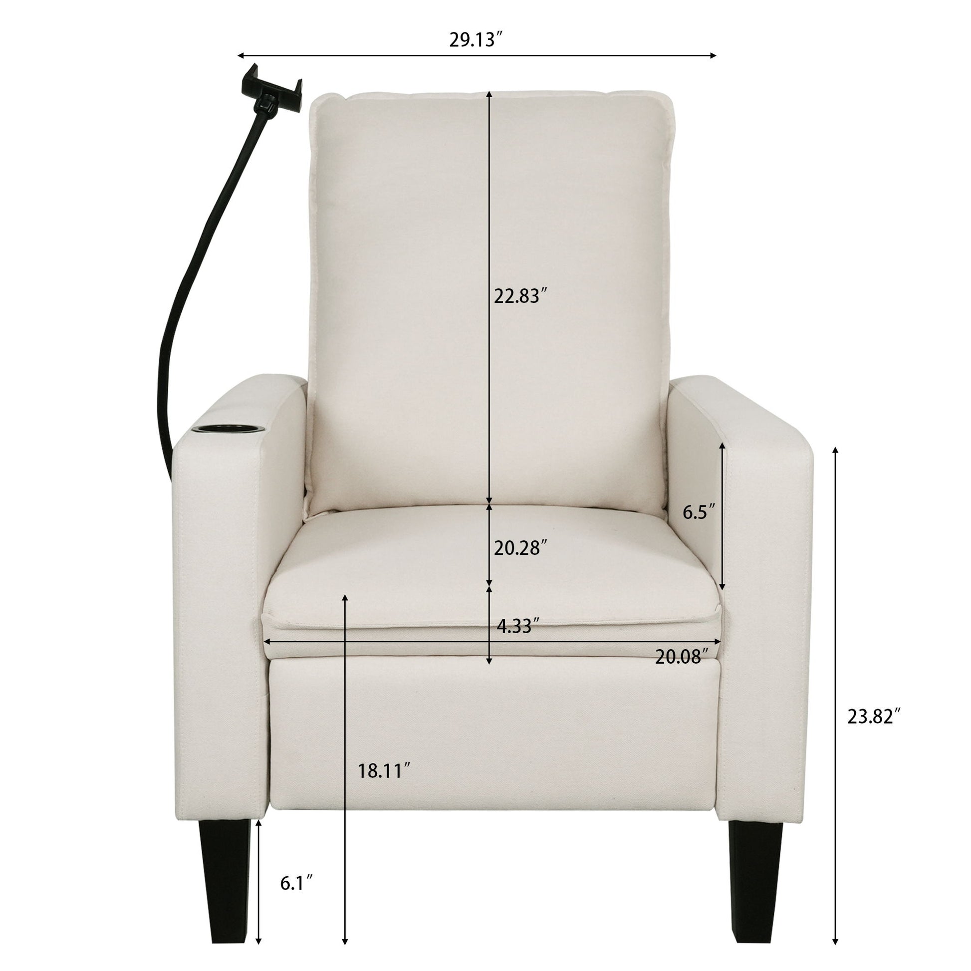 Recliner Chairs For Adults, Adjustable Recliner Sofa With Mobile Phone Holder & Cup Holder, Modern Reclining Chairs Fabric Push Back Recliner Chairs For Living Room, Bedroom - Beige